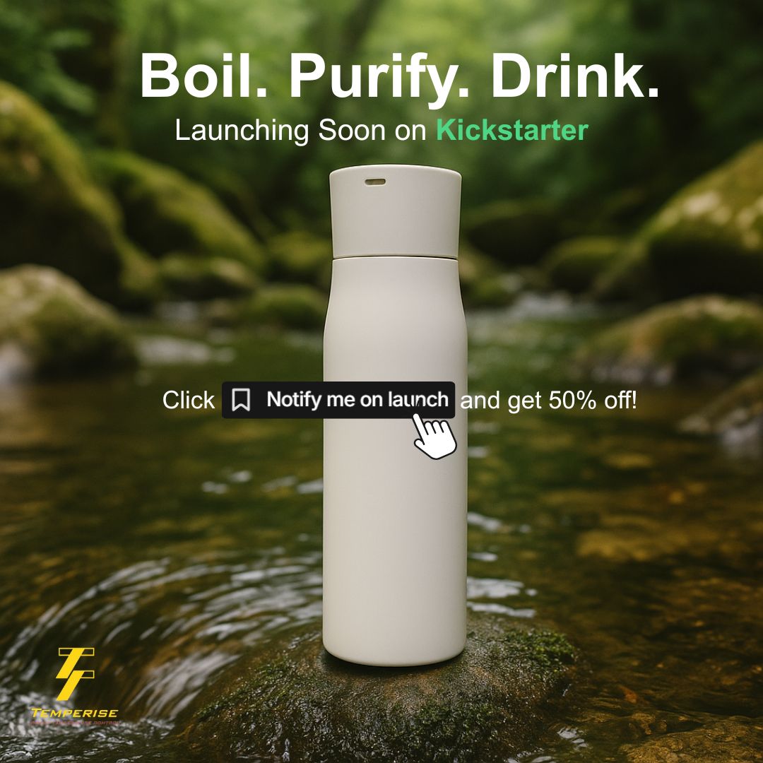When you’re outdoors, hiking, camping, or completely off the grid, getting clean water shouldn’t be a challenge. With Temperise, you can boil and purify water anywhere, no plug, no gas, no fire.